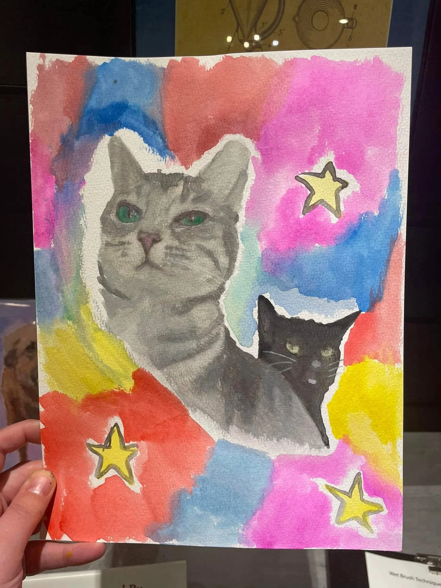 I can host up to 25 people at an event. Price varies by location and scope of work. We can do pet portraits, or we can get creative and do a variety of other things (flowers, landscapes, butterflies, etc).